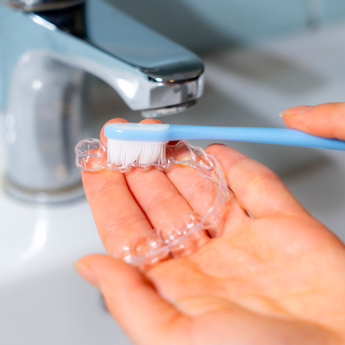 Versa una goccia di Geldis Daily Cleanser sull’apparecchio e spazzola a fondo, avendo cura di pulire ogni lato e raggiungere ogni insenatura.